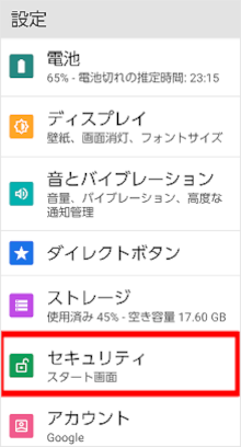 [セキュリティ]をタップします。