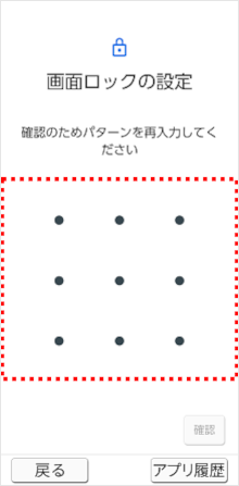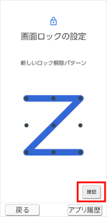 再度同じ「ロック解除パターン」を入力します。