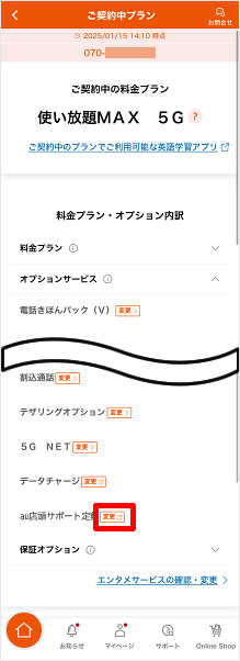 「au店頭サポート定額」の退会は、My au(アプリ)でお手続きができます。