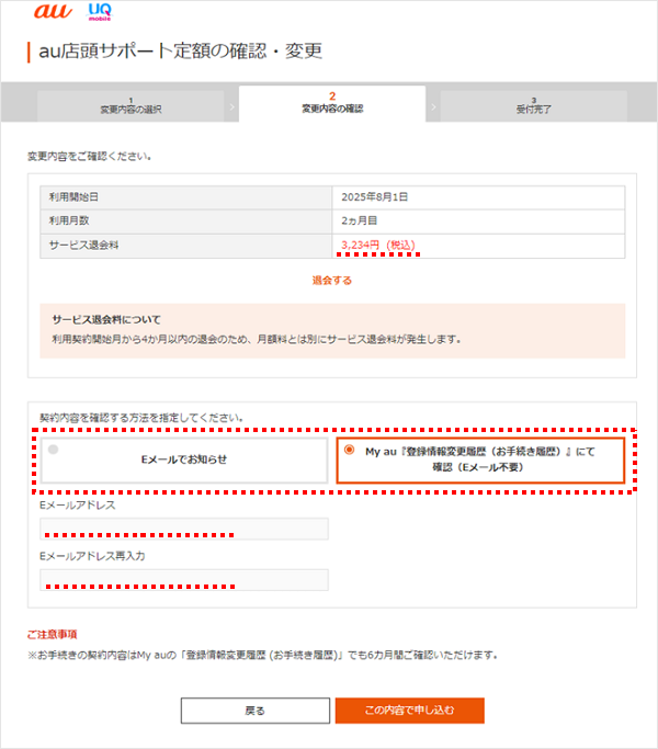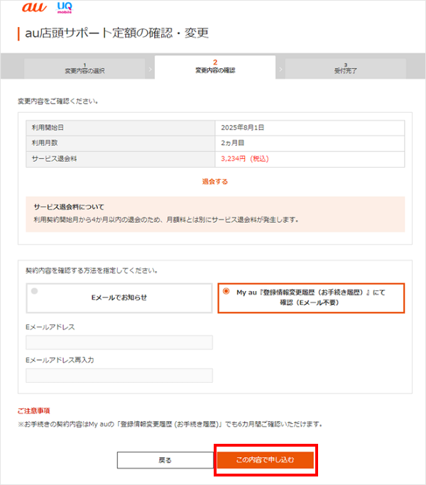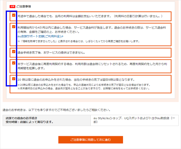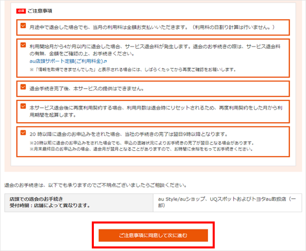 「au店頭サポート定額」は、My au(Web)で退会できます。