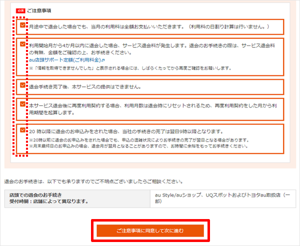 「au店頭サポート定額」の退会は、My au(アプリ)でお手続きができます。