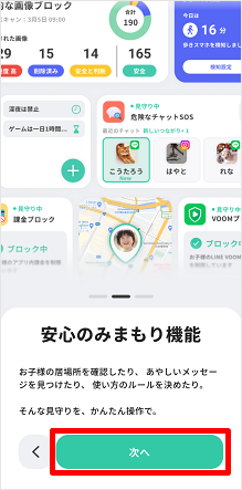 保護者さまの端末でこちらの画面が表示されたら、次の手順からお子さまのスマートフォンで操作します。