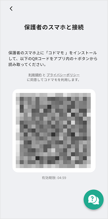 表示されるQRコードを保護者さまの「コドマモアプリ」で読み取ります。