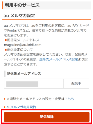 au IDサイトの「au メルマガ設定」ページで停止ができます。 詳細な手順は以下をご確認ください。