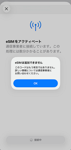 上記を確認の上、改めてeSIM再発行にてお手続きを行ってください。