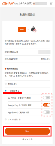 【au PAY(auかんたん決済)】利用を制限する方法を教えてください