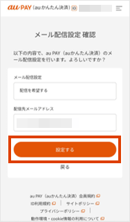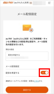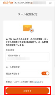 不審な決済にすぐ気付けるよう、au PAY(auかんたん決済)利用時の通知メールを受け取る設定です。