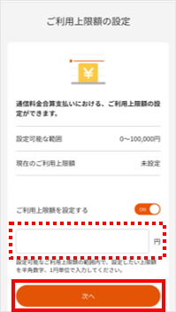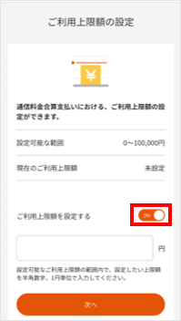[ご利用上限額を設定する]のスイッチをタップしてオンにします。