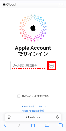 Apple Accountを入力し、[→]をタップします。 ※入力するApple Accountは、紛失したiPhone/iPadに設定されているApple Accountです。