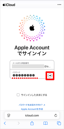 パスワードを入力し、[→]をタップします。