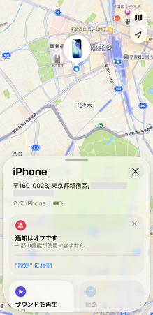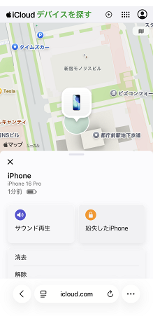 紛失したiPhone/iPadの位置が表示されたら、操作は完了です。