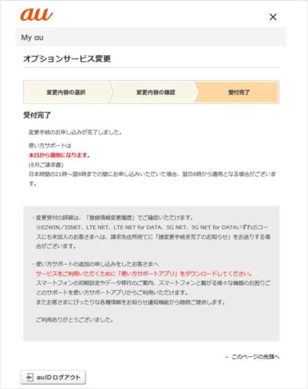 使い方サポートの加入は、My au(Web)でお手続きできます。 詳細な手順は以下をご確認ください。