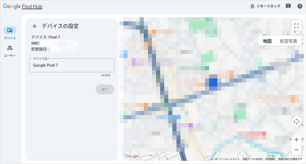 盗難・紛失中のデバイス(端末)が地図上に表示されたら操作は完了です。