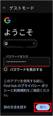 パスワードを入力して[次へ]をタップします。