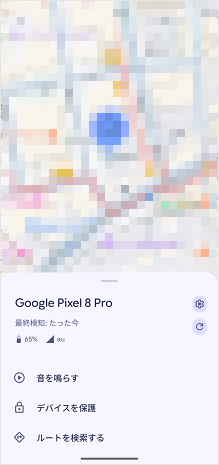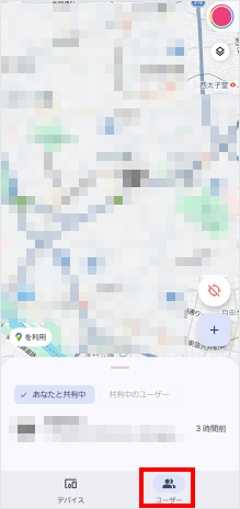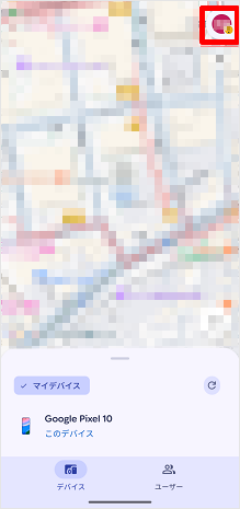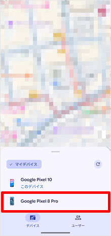 盗難・紛失中のデバイス(端末)が地図上に表示されます。 ※ファミリーリンクを設定した家族を探す場合は、[ユーザー]をタップすると表示されます。