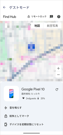 盗難・紛失中の端末と同じGoogle アカウントを利用している別の端末で、[Find Hubアプリ]を起動します。