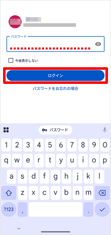 パスワードを入力し、[ログイン]をタップします。