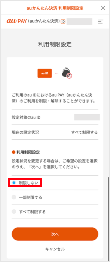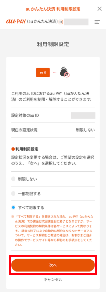 【au PAY(auかんたん決済)】利用を制限する方法を教えてください
