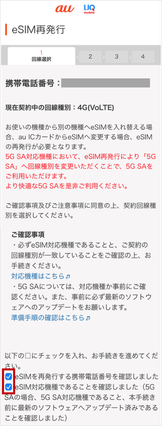 ご確認事項を確認し、[チェックボックス]をタップします。