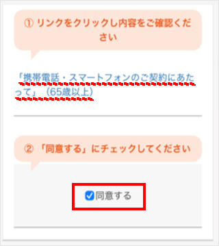 「携帯電話・スマートフォンのご契約にあたって」をご確認いただき、[同意する]をタップします。