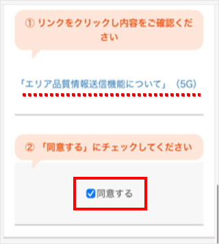 「エリア品質情報送信機能について」をご確認いただき、[同意する]をタップします。