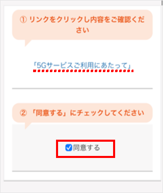 「5Gサービスご利用にあたって」をご確認いただき、[同意する]をタップします。