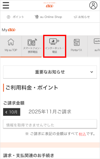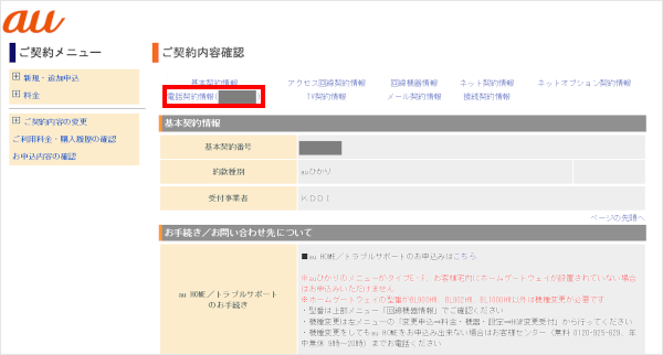 ご契約中のauひかりの電話番号は、My au(Web)で確認できます。