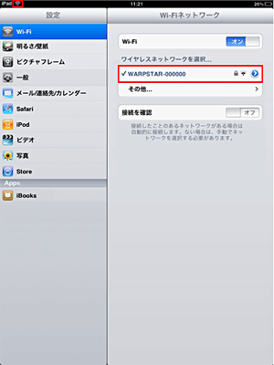 | ワイヤレスネットワークを選択 | 接続するアクセスポイント(無線LAN親機)のSSID※ |