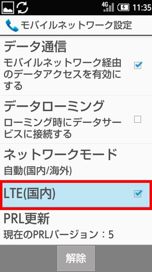「LTE通信」の通信設定がオフになっていると、4G LTE通信に接続できません。
