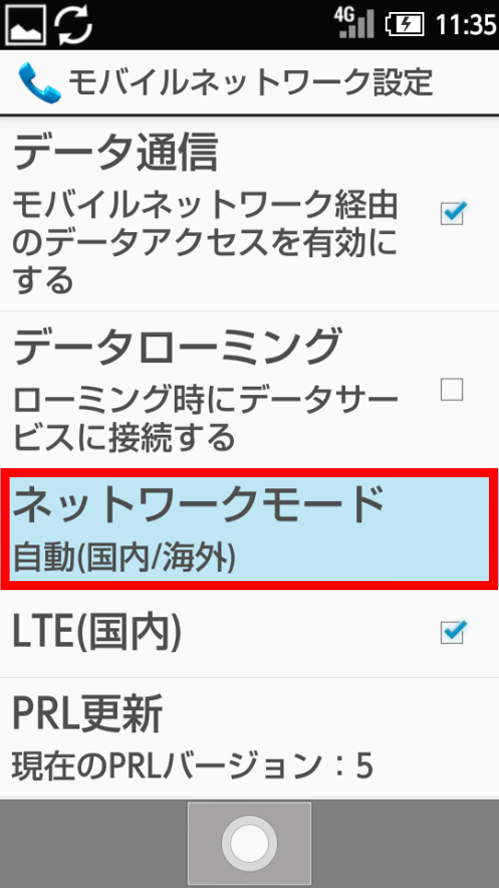 国内(CDMA)または自動(国内/海外)にチェックしてください- 画面は、SHF31の表示例です。機種により異なります。